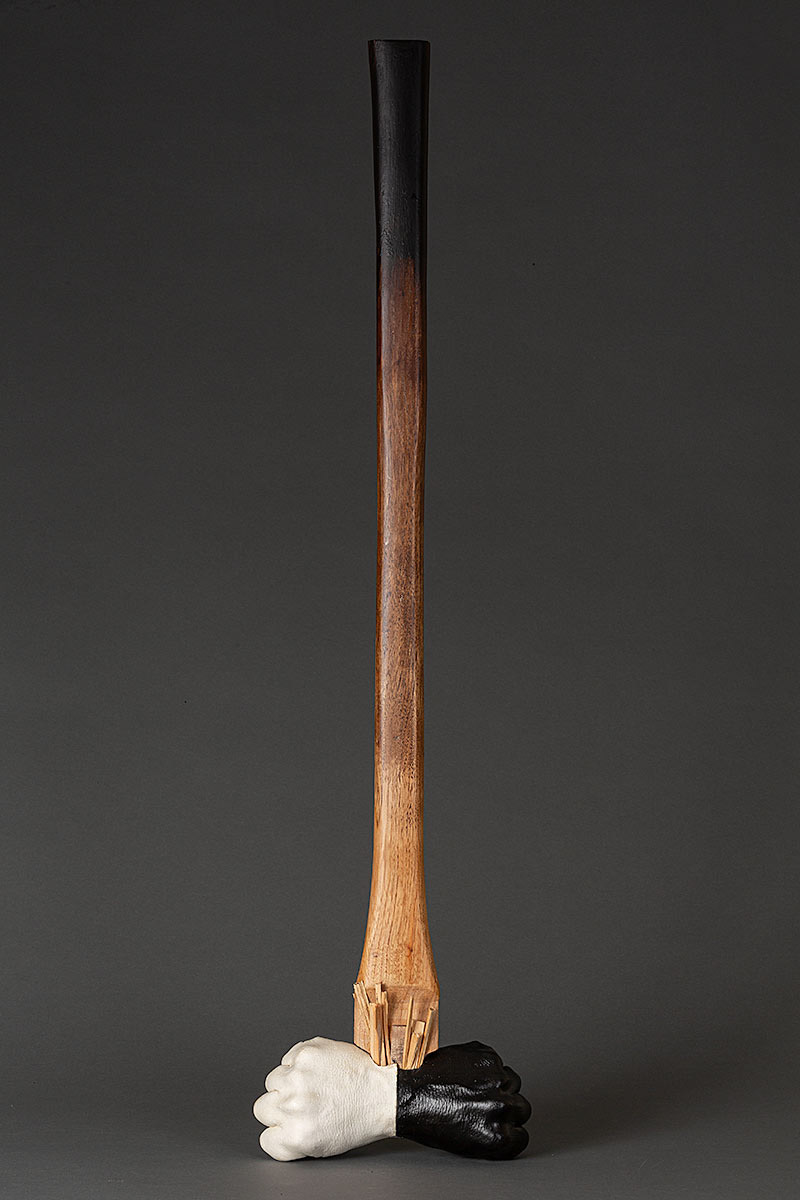 american hickory, stain, lacquer, reinforced plaster, acrylic, steel, epoxy, wax